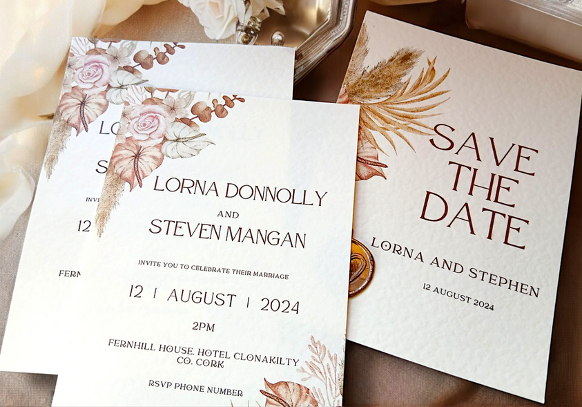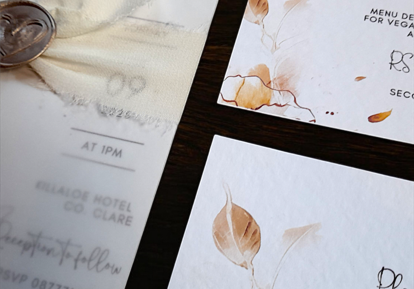 Karyss was borne out of desire to create a stationery collection to cater for couples opting for a Boho-Luxe aesthetic, keeping the style free but with a soft elegance. Karyss balances surprisingly well with many of the customisation options and colours.